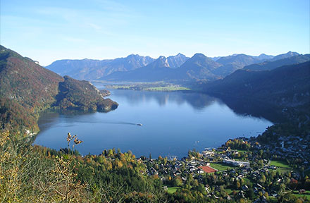 Wolfgangsee – jezioro całkowicie otoczone górami, głębokość jeziora 114m. Atrakcją tego jeziora jest posąg syreny na trzydziestu metrach.