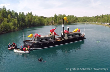 Fascynującą ciekawostką jest prehistoryczna historia tego terenu – podczas eksploatacji wydobyto stąd wiele kości pradawnych zwierząt, w tym mamutów i nosorożców włochatych. Dzięki zaangażowaniu naszego kolegi – Sławka, który opiekuje się nurkowiskiem, pod wodą powstał prawdziwy podwodny skansen. Atrakcje obejmują łódź, trabanta, platformy treningowe, stary wóz, stół, żarno, a także specjalną miejscówkę z kopiami kości mamuta i nosorożca włochatego wydobytych z terenu zalewu.